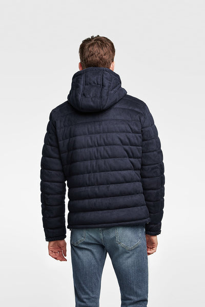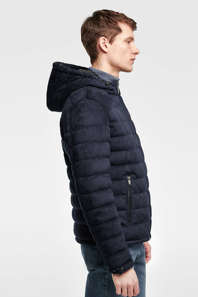 Faux suede jacket featuring a high collar, adjustable hood and long sleeves with snap buttons. Two front zip pockets, lining with an inside snap-button pocket and zip-up fastening.HEIGHT OF MODEL: 189 CM / 6′ 2″ SIZE EUR L